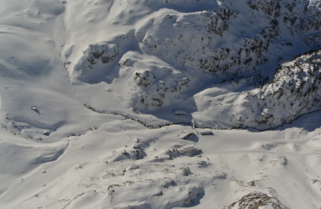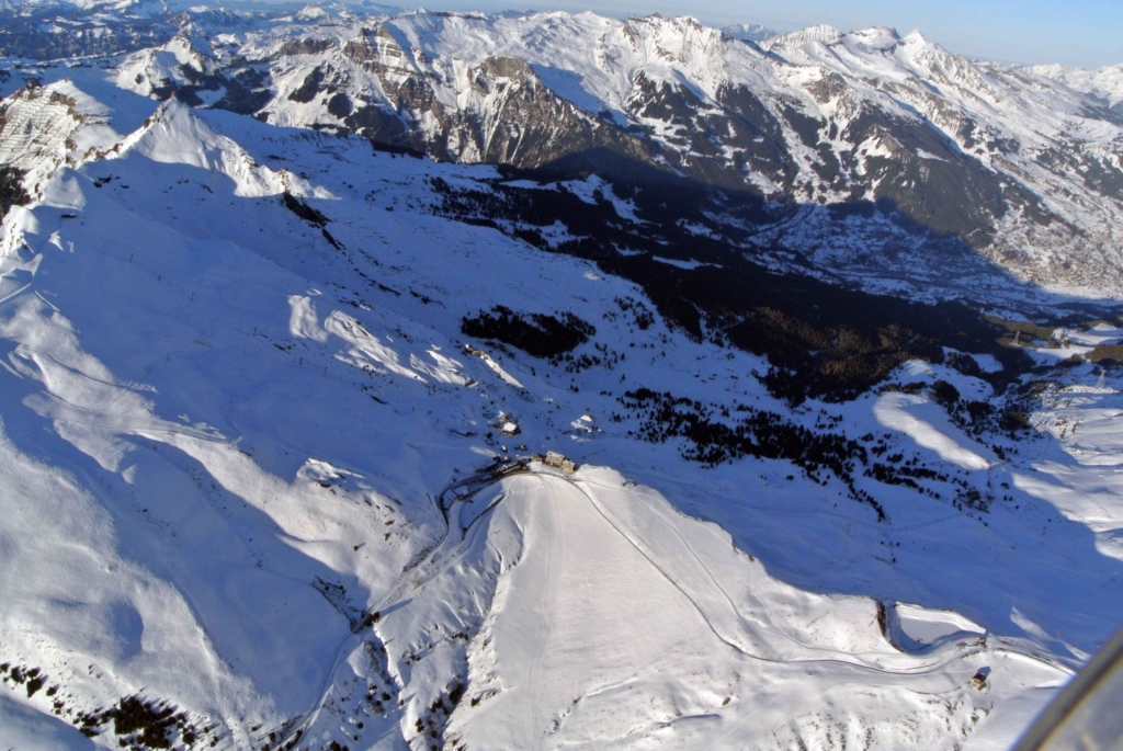 Zwischen den beiden Stürmen baute sich am 7. Februar ein Hochdruckgebiet auf und dieses bot ideale Bedingungen für Landungen im Gebirge an. Hier der tiefverschneite Klausenpass.