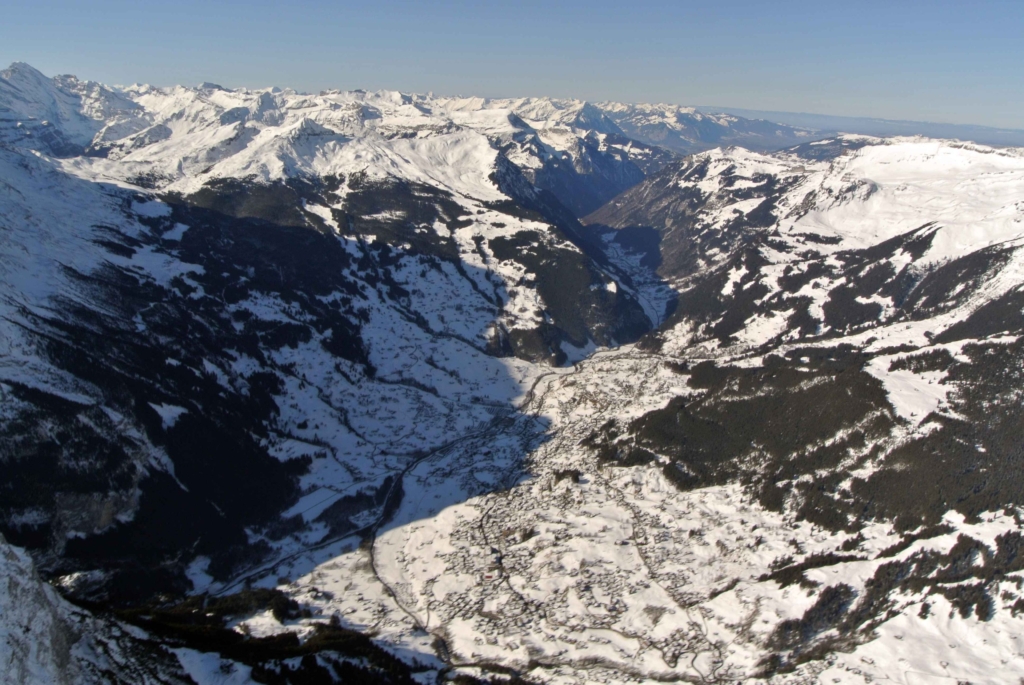 Weiterflug Richtung Jungfraujoch. Hier rechts unten Grindelwald.
