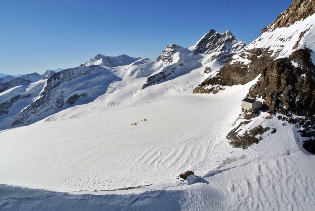 Mein Ziel ist es den Landeplatz Jungfraujoch von Osten her anzufliegen und dabei das Mönchsjoch zu überfliegen, die Aussicht beim Steigflug dorthin ist einmalig!