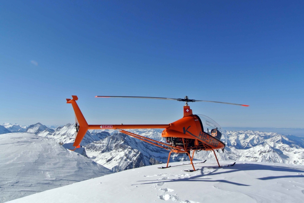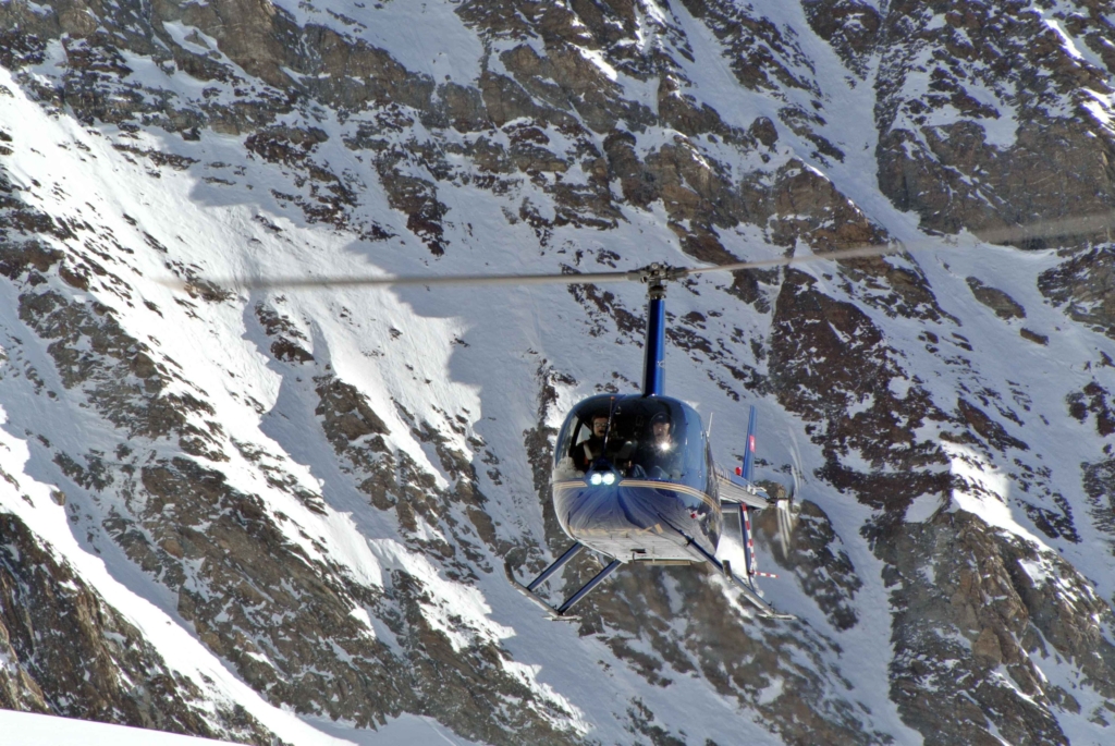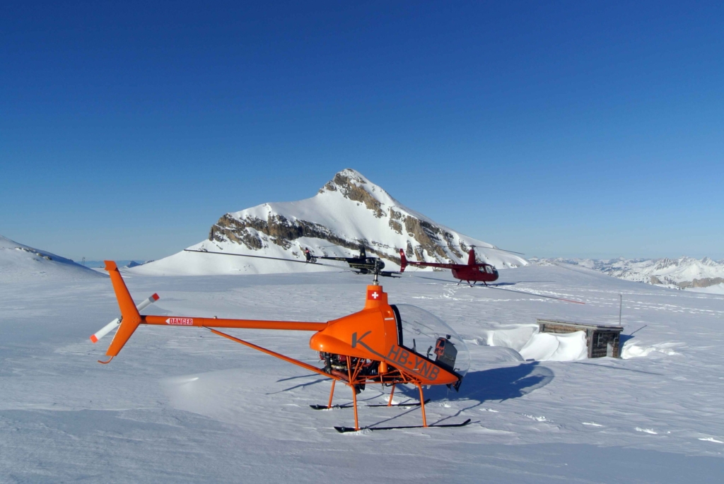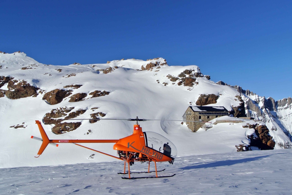 Meine Kollegen mit dem R44 starten gerade Richtung Mutthornhütte.