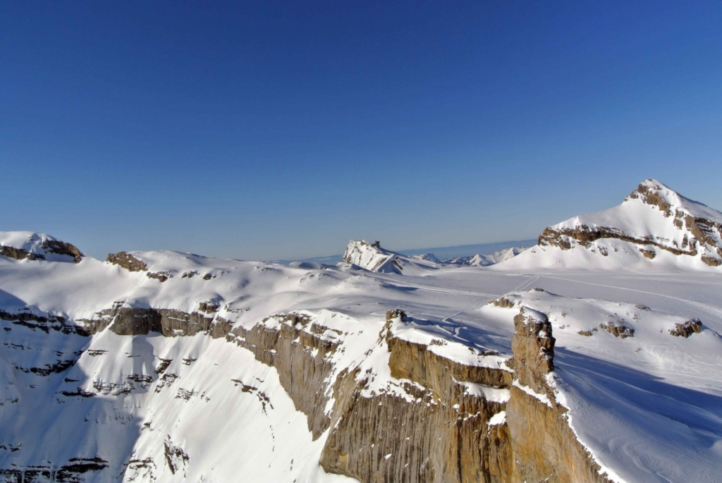 Nach der Mittagspause fliege ich zur Ebnifluh, hier die imposante Nordwand des Landeplatzes.