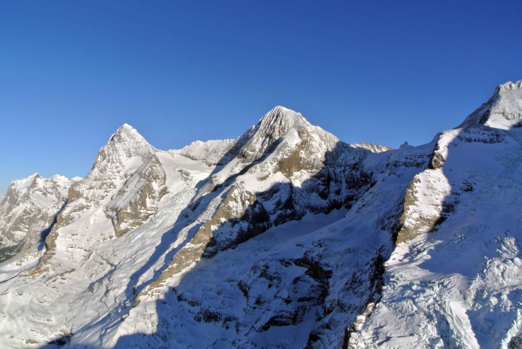 Jetzt aber ohne Halt in die Speck zurück! Eiger, Mönch und Jungfrau, im Schatten die Sphinx,…….
